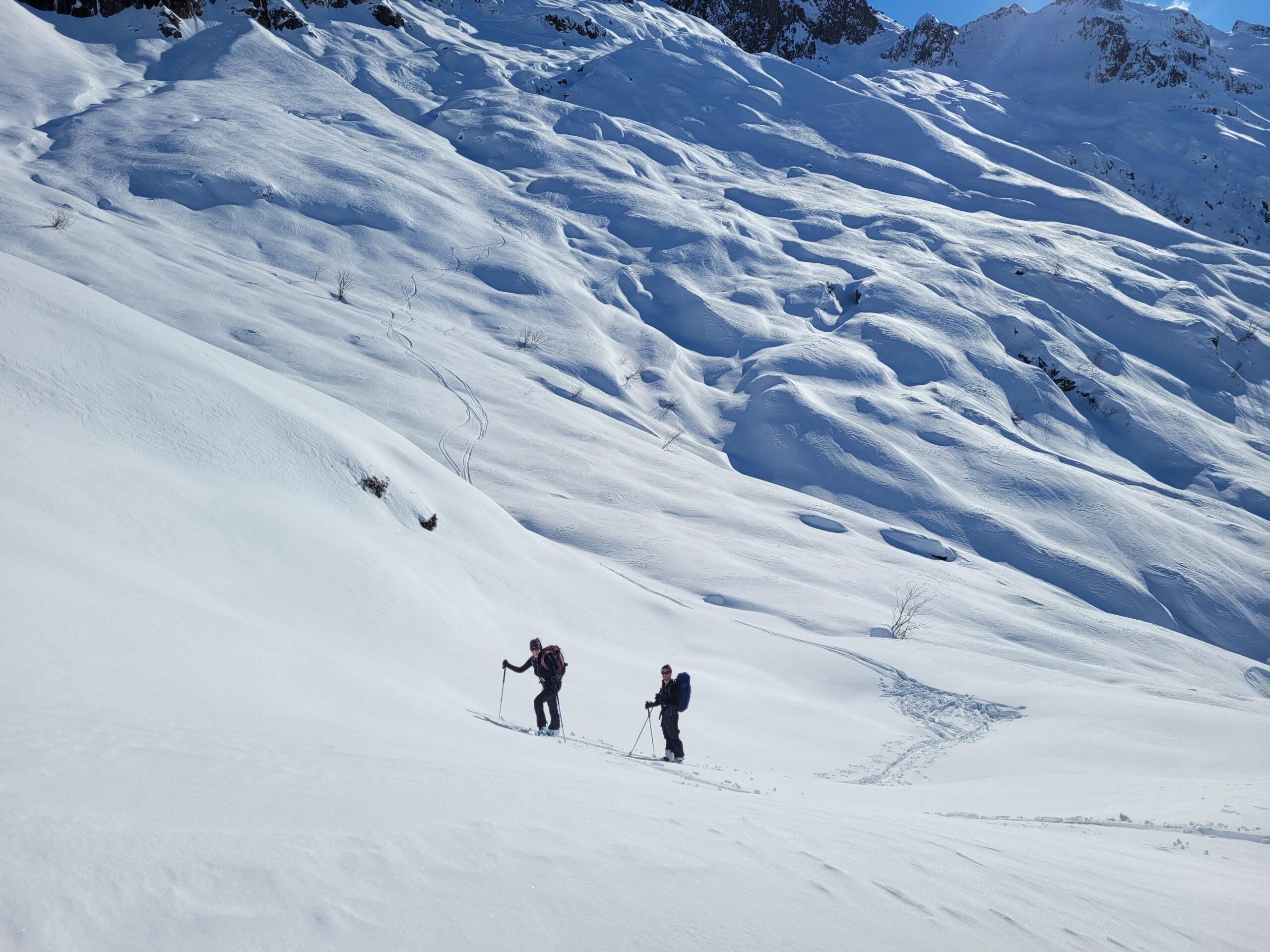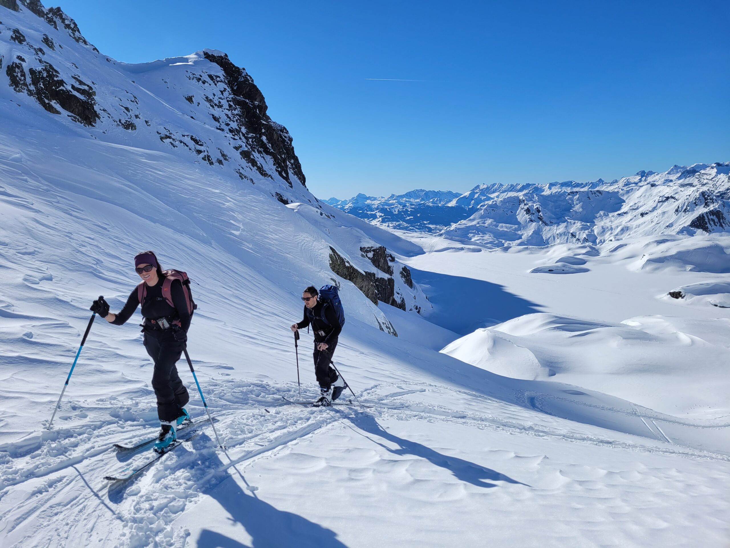 Et pour ceux qui souhaitent goûter à l’aventure en altitude, venez participer à l’un de nos stages. Nous vous enseignerons l’utilisation de l’équipement de sécurité (DVA, pelle, sonde) ainsi que les techniques de progression en ski de randonnée. Le massif des Écrins ou la Vanoise seraient d’excellents terrains pour une première immersion sereine… Il y en a pour tous les goûts, même pour les amoureux de panoramas doux et ensoleillés. Dites-nous votre montagne, on vous la fera skier !